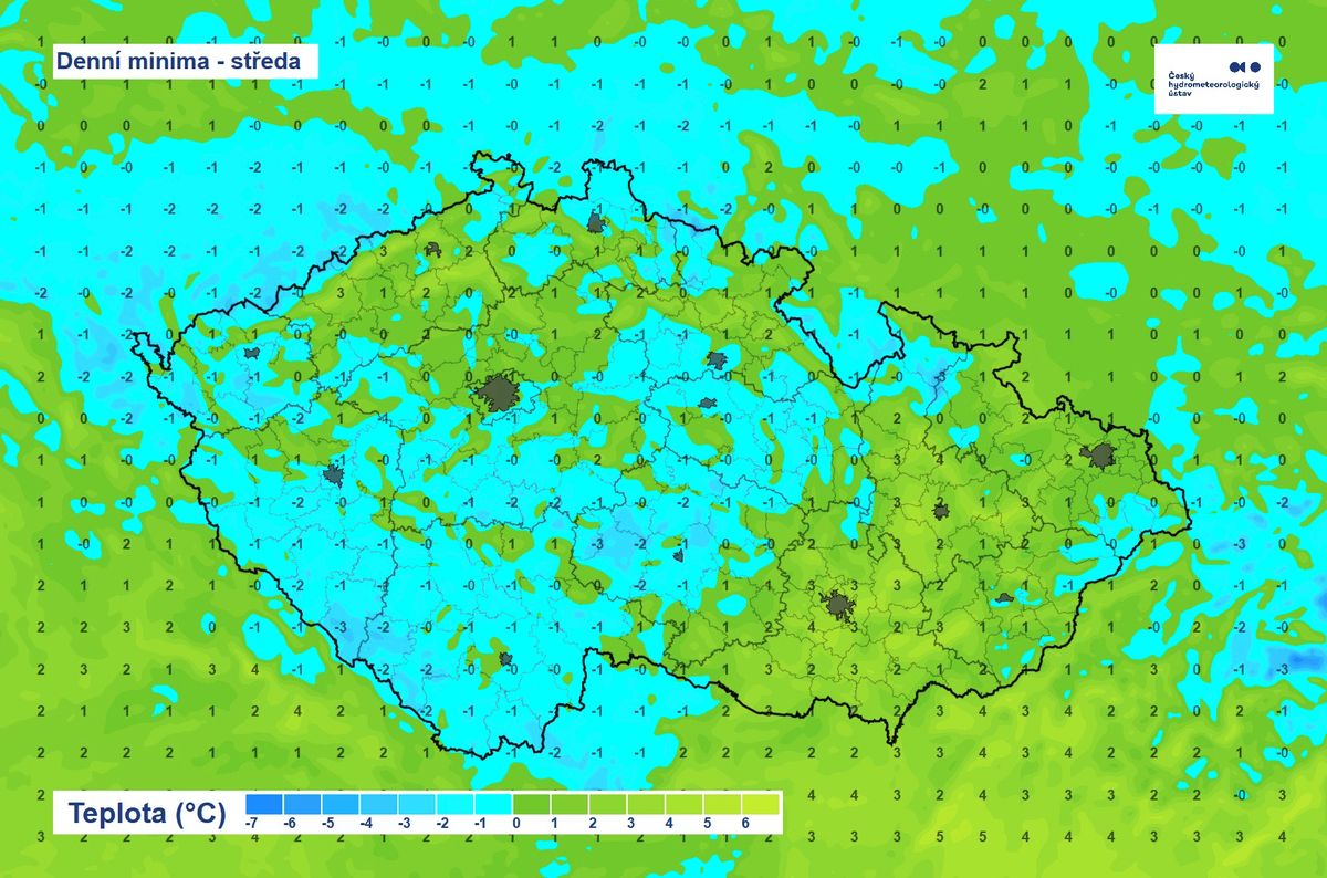 „Nejvyšší teplotu hlásí před 5. hodinou SELČ Přerov (6,7 °C), Olomouc, Holice (6,6 °C), Holešov a Ivanovice na Hané (6,3 °C). Nejnižší teplotu má naopak Sněžka, Poštovna (-3,8 °C) a mimo hory Vyšší Brod (1,5 °C),“ napsal ČHMÚ.