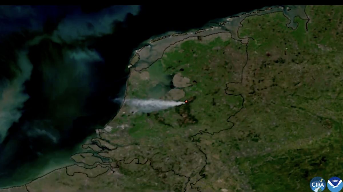 Na tepelném kanálu byl červenou barvou dobře vidět i požár samotný. Nizozemská meteorologická služba (KNMI) dokonce zachytila kouř i na radaru.