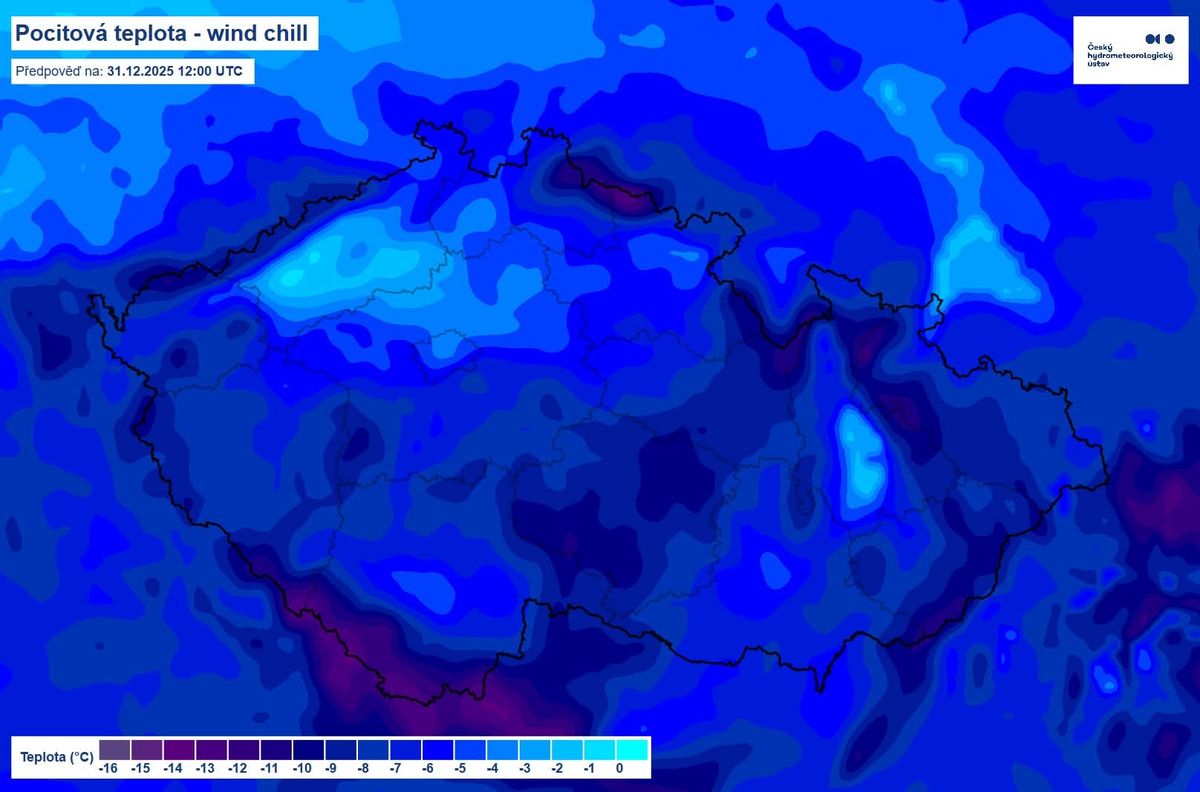 Pocitově vnímanou teplotu bude na Silvestra až o 10 stupňů srážet čerstvý severozápadní vítr.
