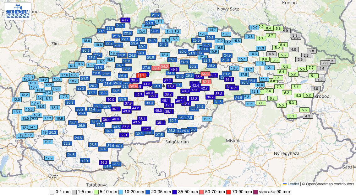 „Nejnepříznivější povodňová situace byla v povodí řek Ipeľ, Slaná, Hron, Nitra, Bodva, Hornád a Bodrog. Evidujeme 38 stanic, na kterých byly za předchozích 24 hodin překročeny úrovně povodňové aktivity,“ uvedla ve středu vedoucí oddělení hydrologických předpovědí a výstrah Slovenského hydrometeorologického ústavu (SHMÚ) Danica Lešková.