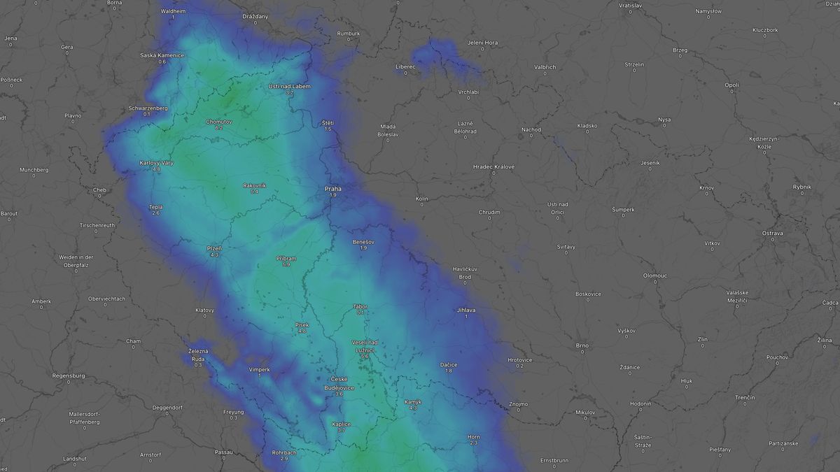 Na jihozápadě Česka, zejména podél hranic s Německem, se ve vyšších vrstvách atmosféry udrží teploty nad nulou. Srážky zde proto budou většinou dešťové, sněžit bude jen v nejvyšších polohách Šumavy.