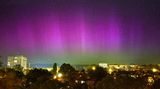 Polární záře zachycená v noci na středu z Říčan u Prahy