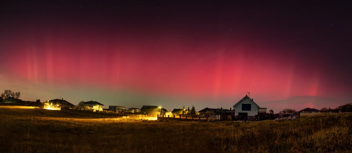 KRÁTCE: Predikce Národního úřadu pro oceány a atmosféru (NOAA) se vyplnila a k Zemi v noci na středu dorazil hustý plasmatický oblak elektricky nabitých částic z předchozích slunečních erupcí. Událost způsobila intenzivní geomagnetickou bouři třídy G4 na pětibodové stupnici. Redakce Novinek se krátce po půlnoci vydala zdokumentovat velkolepé sloupy rudé polární záře (aurory borealis) na sever Čech do Frýdlantského výběžku, který se po většinu pozorovacího času nacházel mimo dosah mlh a nízké inverzní oblačnosti. V současné době k naší planetě putuje poslední vlna koronální hmoty z úterní silné erupce a další šance na spatření aurory, a to i pouhýma očima, nastane v místech se zmenšenou oblačností pravděpodobně už ve středečních večerních hodinách.