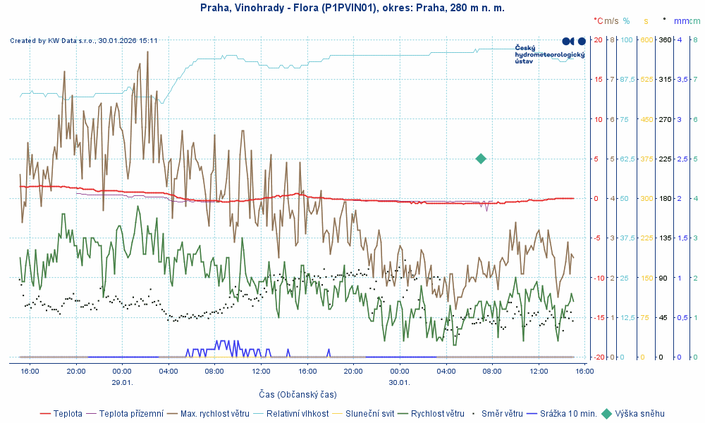 Pět centimetrů napadlo v centru Prahy, v Plzni, Pardubicích, Ústí nad Labem i v Liberci. V Brně a v Olomouci naměřili dva centimetry nového sněhu.