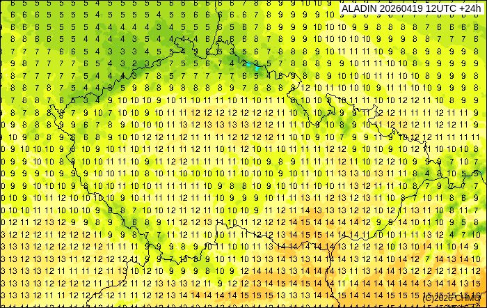 Současné výstupy z numerických modelů naznačují, že o víkendu do Česka po zadní straně tlakové níže nad východní Evropou pronikne o něco chladnější vzduch od severu. V sobotu bude pravděpodobně ještě oblačno až polojasno s teplotami až kolem 16 °C, ale v neděli zaprší a za studenou frontou se ochladí na 10 °C.