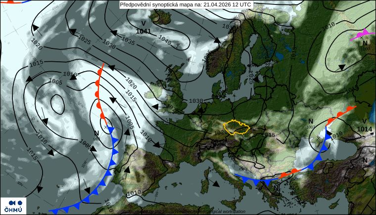 V následujících dnech se nad naše území od severozápadu rozšíří okraj tlakové výše se středem nad Islandem, který od středy zajistí ubývání srážek a polojasnou oblohu.