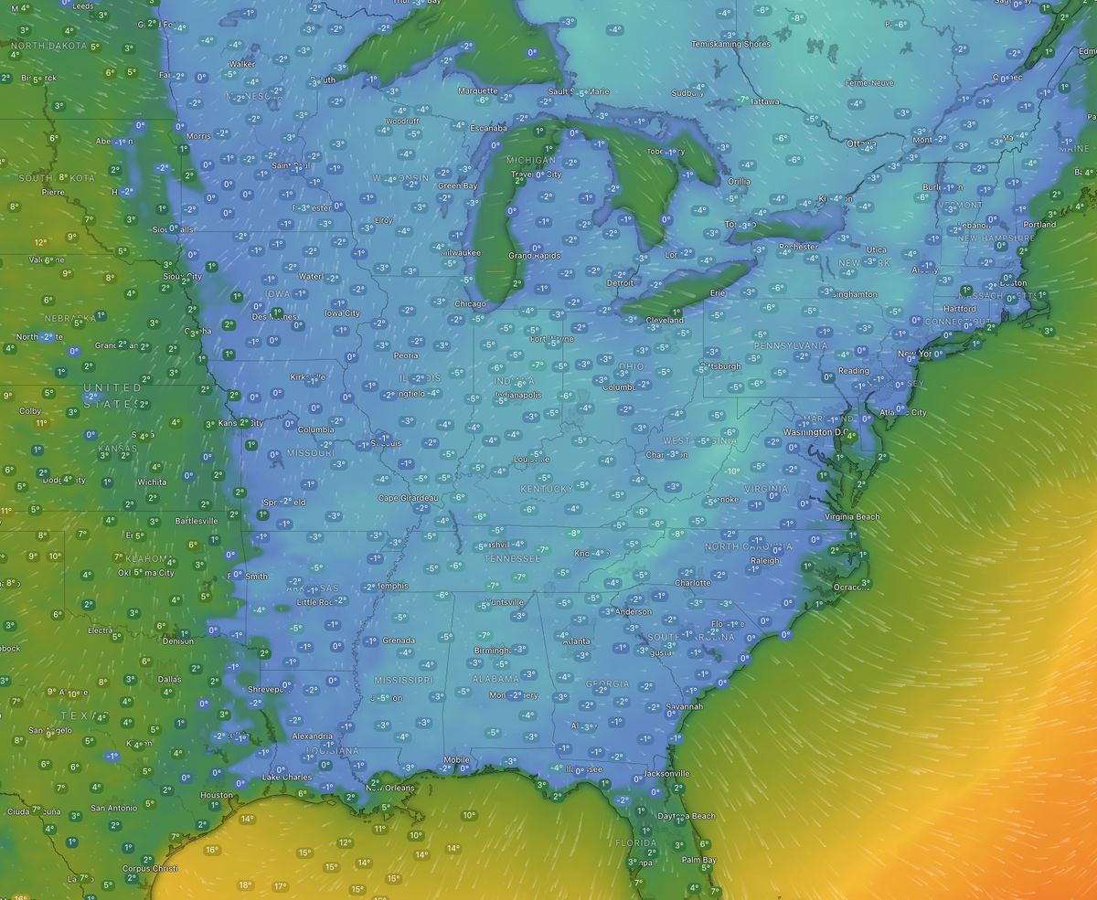 Podle odhadů meteorologů zažilo v úterý ráno až 200 milionů obyvatel mrazivé teploty – od hranic s Kanadou až po Mexický záliv. Takto rozsáhlý chlad je v první polovině listopadu velmi vzácný, zejména v posledních desetiletích.