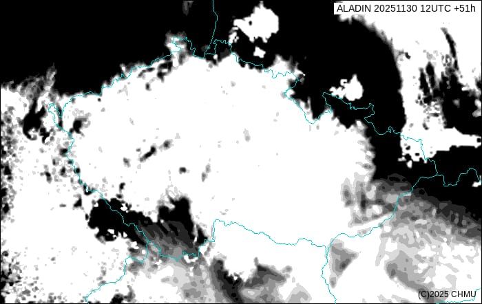 Slunečné počasí bude zejména v horských oblastech, ve Frýdlantském výběžku a na krajním východě republiky. (Model ALADIN)