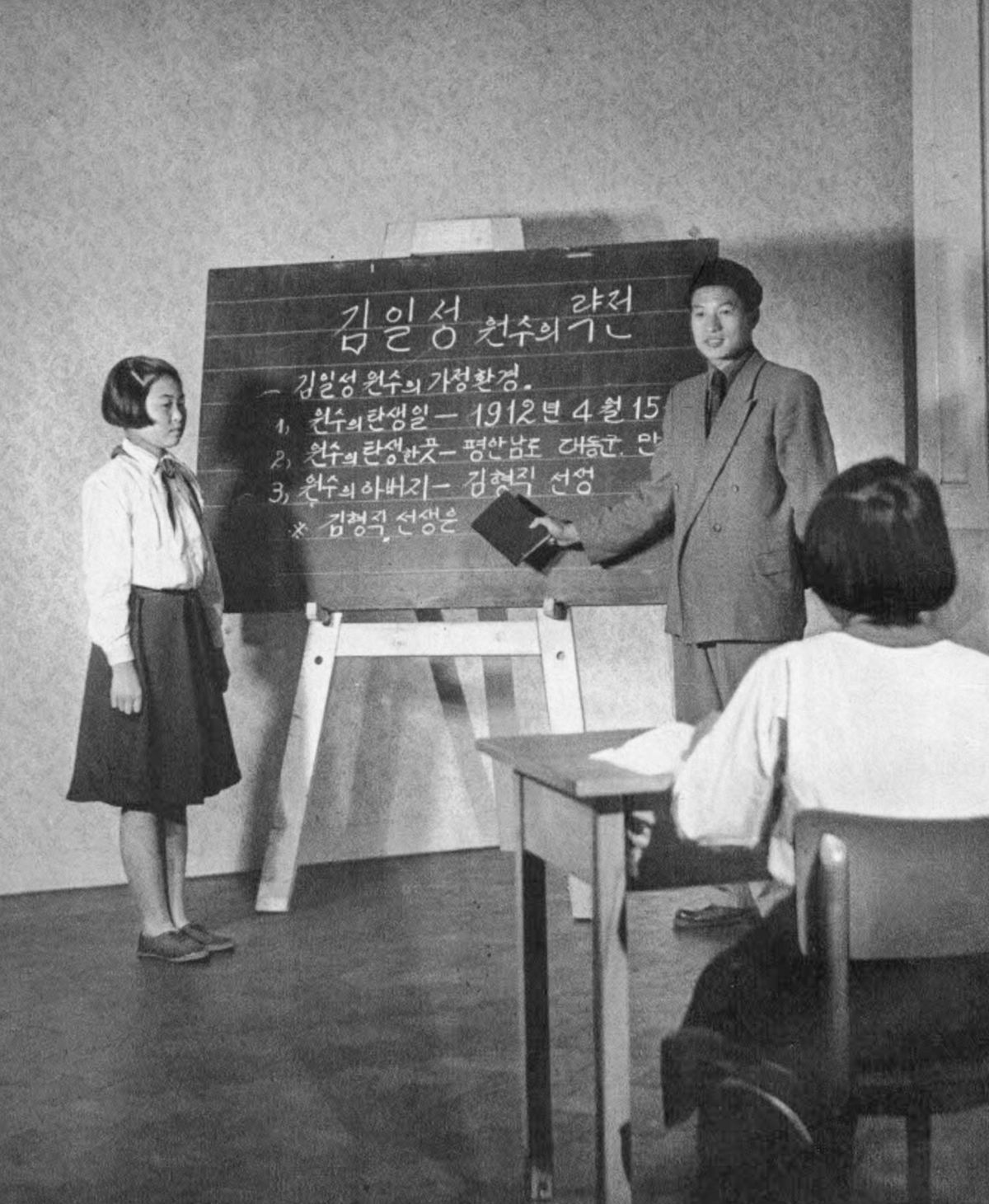 Výuka s korejským učitelem. ZDROJ: Korejská mládež v Československu. Praha: SPN, 1956.