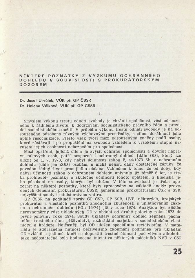 Článek pro čtvrtletník Prokuratora z roku 1979 se jmény Heleny Válkové a Josefa Urválka.