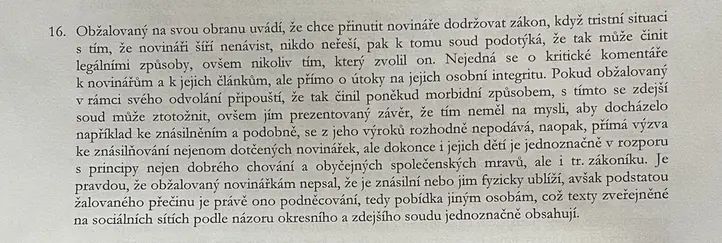 Část rozsudku, který zveřejnily v článku Seznam Zprávy.