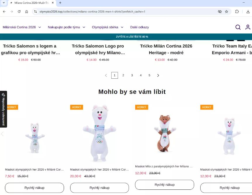 Podvodné weby přitom pracují s přesnou kopií šablony oficiálního prodejce. Používají stejný vizuál, rozvržení i reklamní bannery. Podobná je i nabídka produktů s tím rozdílem, že je všechno skladem a s téměř 50% slevou. Zatímco oficiální e-shop nabízí plyšáka Mila o velikosti 27 centimetrů v přepočtu za tisíc korun a můžete si ho nyní pouze předobjednat, na falešném webu ho údajně můžete mít hned a „jen za 500 korun“. Své peníze už ale neuvidíte a olympijského suvenýru se také nedočkáte.