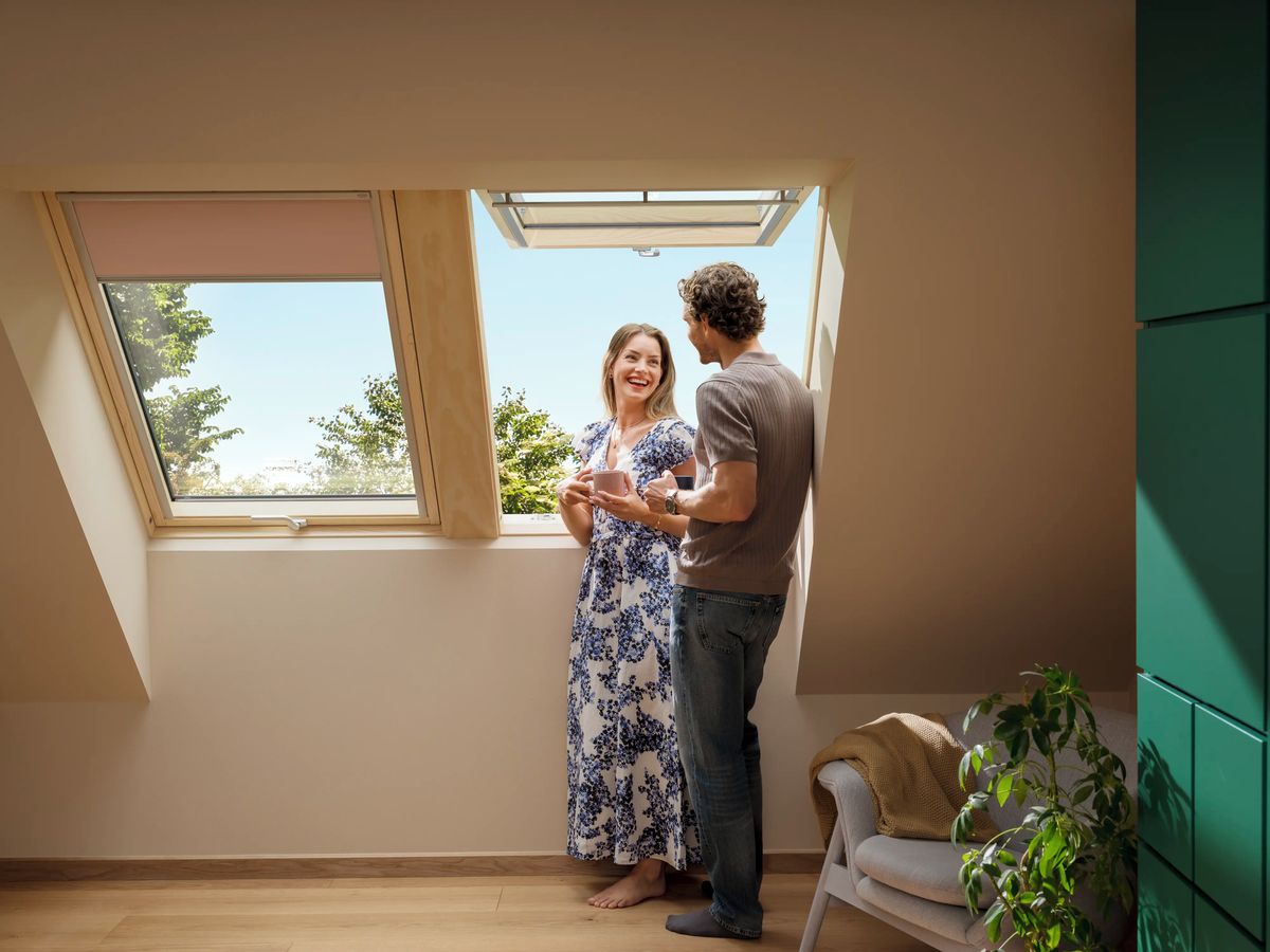 ... nespočívá jen v mechanismu otvírání. Jde o pocit, prožitek, emoce. Zatímco tradiční kyvná střešní okna, která se otvírají otáčením kolem středové osy, jsou praktická, výklopně-kyvné provedení umístěné ve správné výšce poskytuje pocit svobody a prostorový zážitek podobný balkonu.