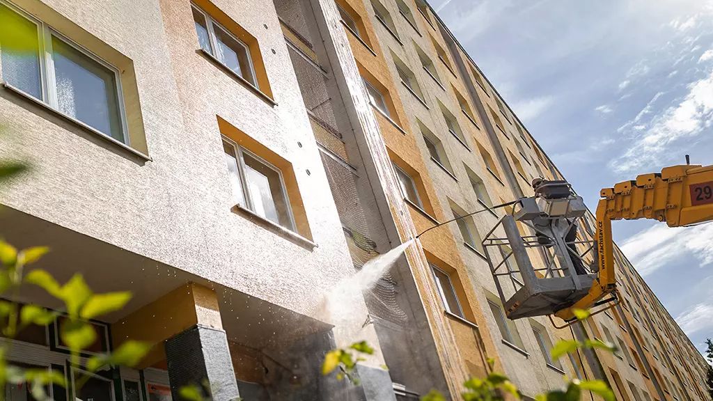 Mnozí majitelé bytových domů problém řeší, až když je pozdě. „Stačí přece přetřít,“ říkají si. Jenže bez odborného vyčištění se spory usazené hluboko v omítce brzy objeví znovu. A tak se kruh opakuje. Profesionální mytí fasády naopak odstraní nánosy i z míst, kam se štětec nikdy nedostane.