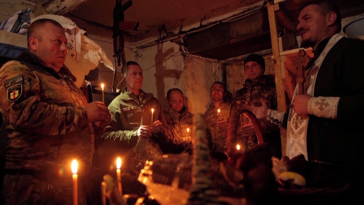 Ukrajinští vojáci slaví Velikonoce na frontě, ruské drony jim ale létají nad hlavami i přes Putinem vyhlášené příměříVideo: Reuters