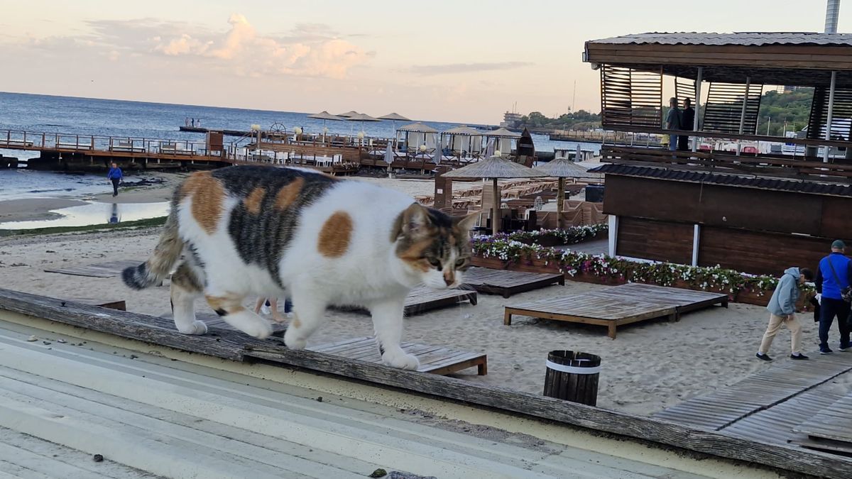 Celkem je podle ní na všech plážích v Oděse přes osm set koček. Mnoho z nich už se prochází i po městě. Staly se symbolem válkou zmítané Oděsy. U jedné z kaváren je možné spatřit i sochu sedící holčičky, na kterou se dívá umělecky ztvárněná kočka žadonící o drobný pamlsek.