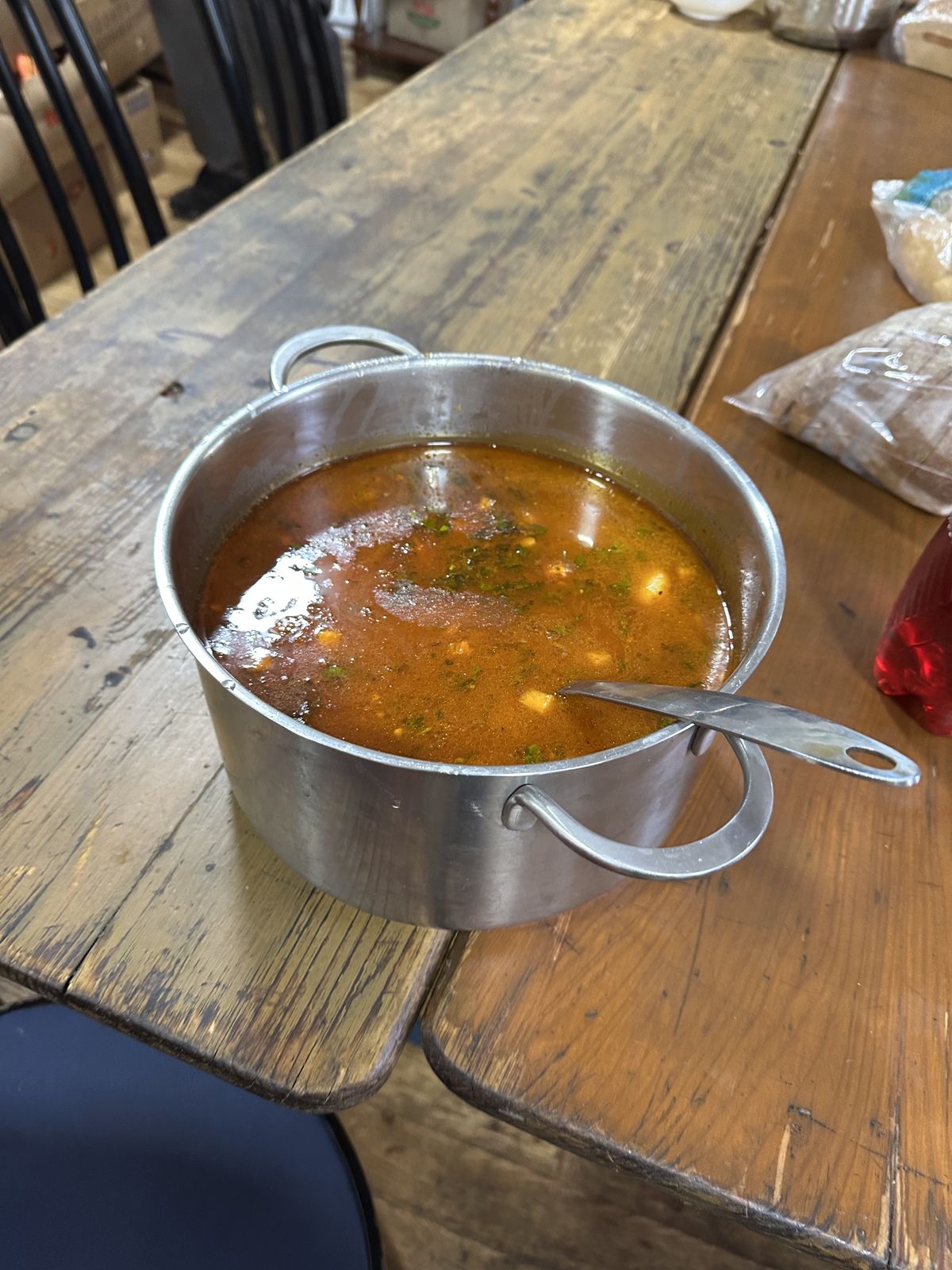 Domácí polévka. Oleh s manželkou byli velmi pohostinní.