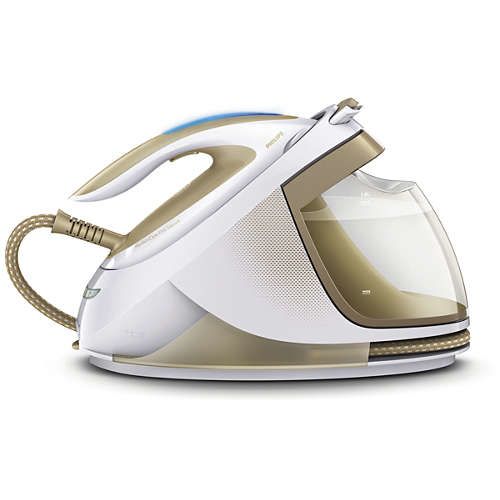 Philips PerfectCare Elite Parní generátor GC9640/60 - systémová žehlička, u které se nenastavují teploty, ani typy materiálů. Žehlička si sama poradí s materiály od džínů po hedvábí a to bez spálení, cena: 9 699 Kč