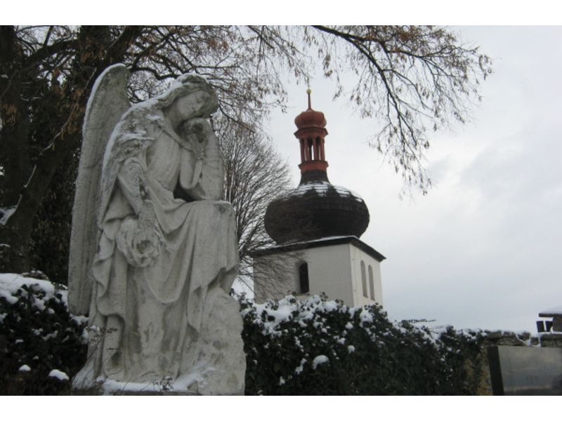 Na vyvýšenině vpravo od silnice vidí hřbitovní kostel sv. Ducha, jednu z nejkrásnějších staveb v celém Podorlicku. Tvůrci seriálu tedy tak trochu mystifikovali jeho diváky, protože kostelík se ve skutečnosti nachází až za městem Dobruškou, a tudíž ho F. L. Věk nemohl při návratu domů ze studií v Praze míjet.