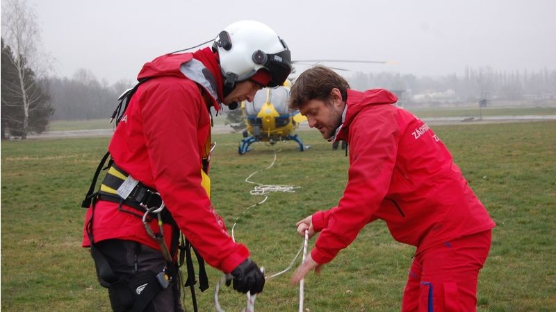 Technika, kterou záchranáři cvičili, bývá využívána několikrát do roka při záchraně pacienta z nepřístupného terénu, např. na horách, tedy v místech, kde není možné přistání helikoptéry v bezprostřední blízkosti pacienta.
