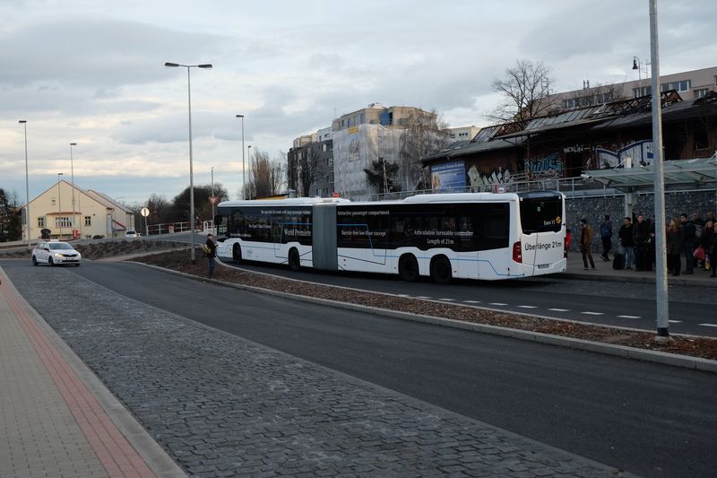 Nový dvoučlánkový čtyřnápravový autobus Mercedes-Benz CapaCity L, který může v základním provedení pojmout až 191 cestujících, bude testován v rámci pražské MHD na letištní lince 119 v průběhu února.