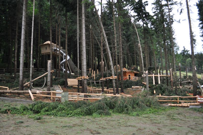 „Ačkoliv tornádo značně poničilo části areálu, některé aktivity a atrakce zůstávají i nadále otevřeny a velké množství pracovníků intenzivně maká na odklízení škod a na opravách. Znovu otevření Mamutíkova vodního parku plánujeme do sedmi dnů, Lesní zážitkový park ihned po dokončení oprav a Lanový park maximálně do čtrnácti dnů se čtyřmi okruhy,“ dodal Palán.