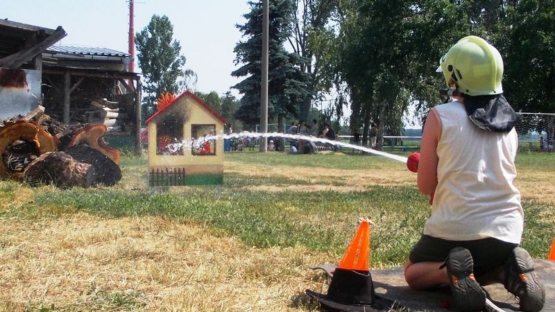 Dětí přišlo kolem stovky, tak jako obvykle. Byl mezi nimi ale značný věkový rozdíl. Některým ještě dělala potíže samostatná chůze a rodiče jim museli pomáhat, dostavili se ale i školáci. Všichni si vyzkoušeli desítku různých disciplín. Hod šipkou byl ještě snadný, stejně jako hod tenisovým míčkem, ale slalom mezi lahvemi s pingpongovým míčkem na lžíci už někomu působil potíže. Také chůdy některé děti neposlouchaly. Zato skákání v pytli šlo všem, stejně jako požární útok. Některé děti byly mimořádně šikovné a excelovaly ve šplhu i provazochodectví.