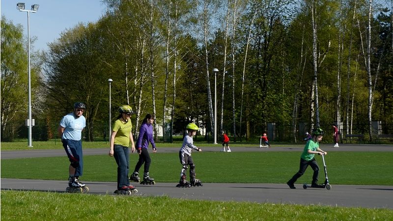 Sportovní in-line dráhy jsou tři. Jedna je speciální s klopenými zatáčkami v délce 200 m okruhu pro specialisty a má mezinárodní akreditaci. Uprostřed je sportovní asfaltové hřiště pro míčové sporty. Celý tento areálek je oplocen.