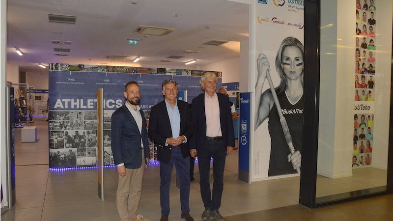 Učinil tak za doprovodu předsedy Českého atletického svazu Libora Varhaníka, primátora města Ostravy Tomáše Macury a dalších organizačních pracovníků.