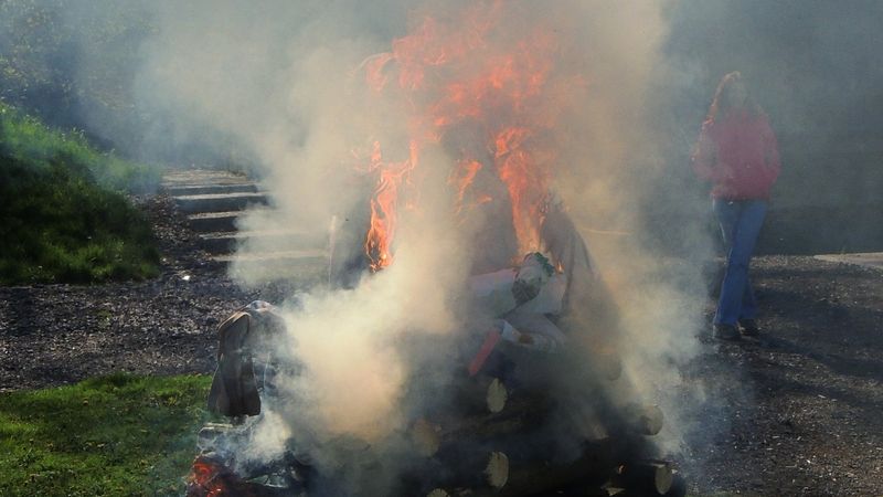 Odpoledne je pak časem pro zábavu těch nejmenších. Rodiče se snaží vyrobit všemožné figuríny, jež se stanou obětí plamenů, aby přinesly vytoužené laskominy.