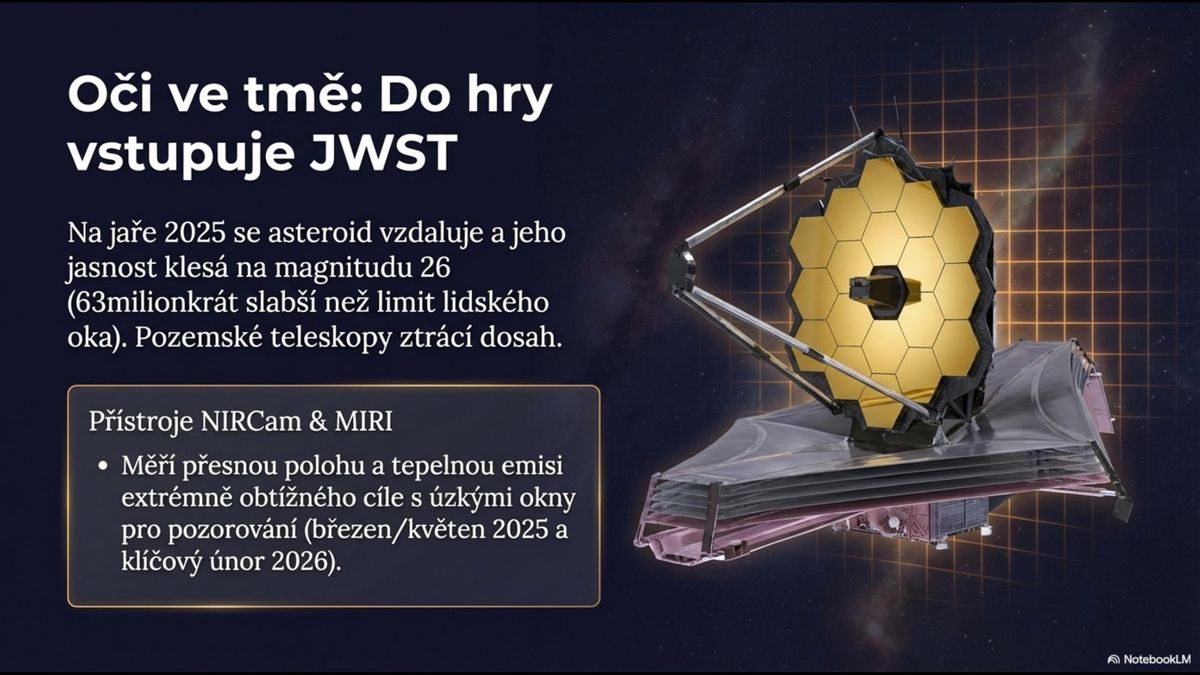 Rozhodující roli sehrál vesmírný dalekohled Jamese Webba (JWST). Tento výkonný a citlivý dalekohled pozoroval asteroid v únoru 2026 v infračerveném oboru, kdy byl už pro většinu pozemních dalekohledů příliš slabý. Webbův dalekohled jej pozoroval 18. a 26. února 2026 pomocí přístroje NIRCam (Near-Infrared Camera). Astronomové pak přesně změřili jeho polohu vůči známým hvězdám na pozadí oblohy.