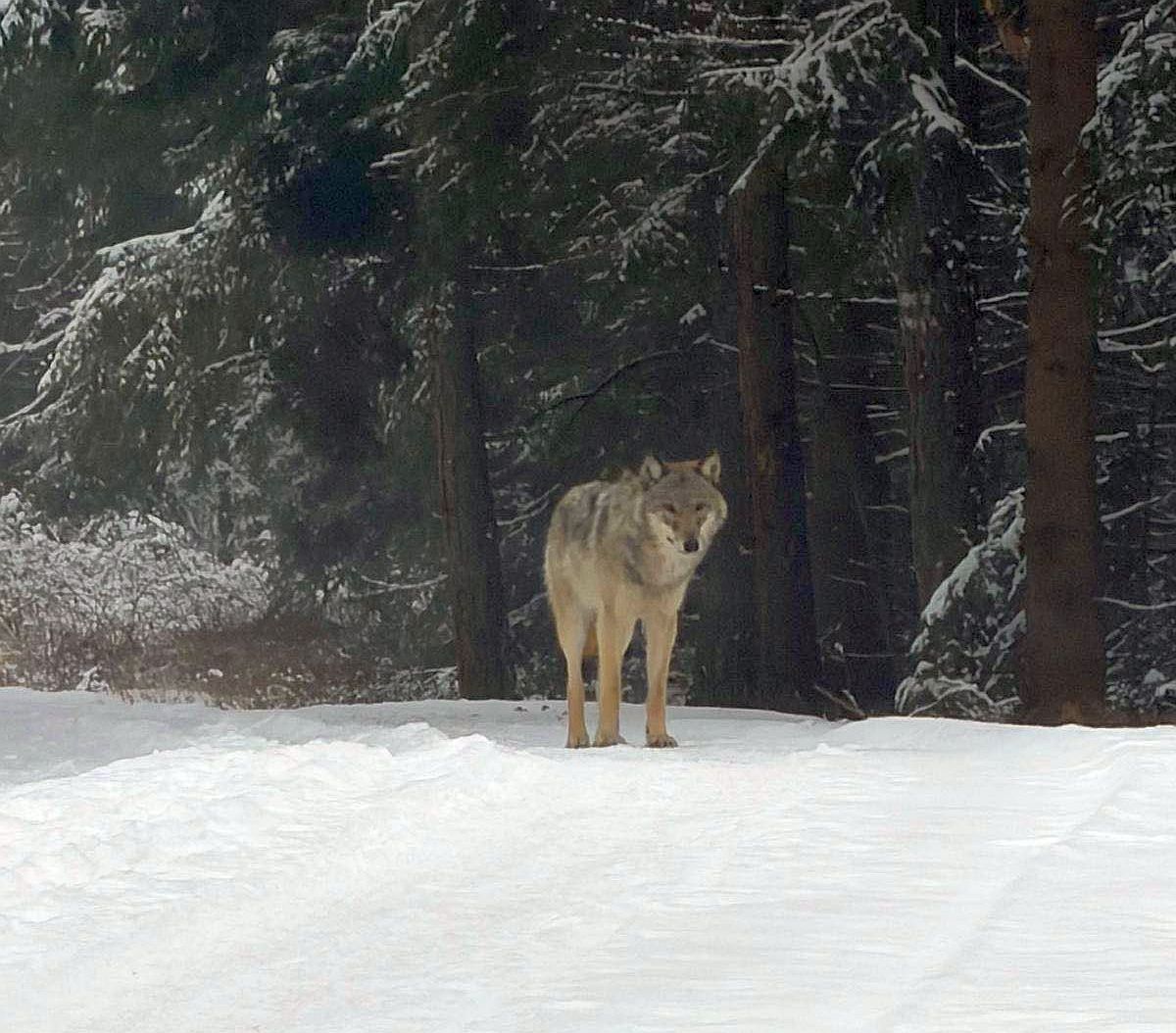 Vlk pozorovaný v únoru u dálniční odpočívky Devět křížů