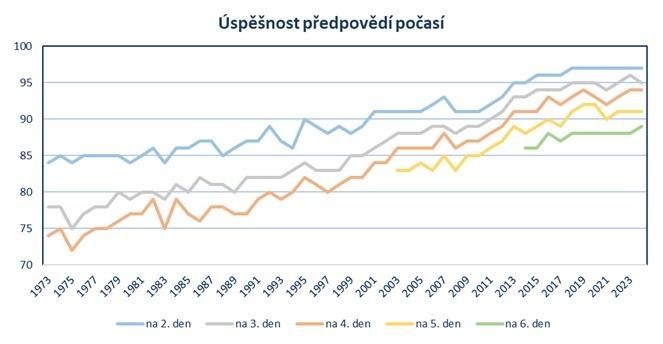 Vývoj úspěšnosti předpovědí počasí Českého hydrometeorologického ústavu (ČHMÚ)