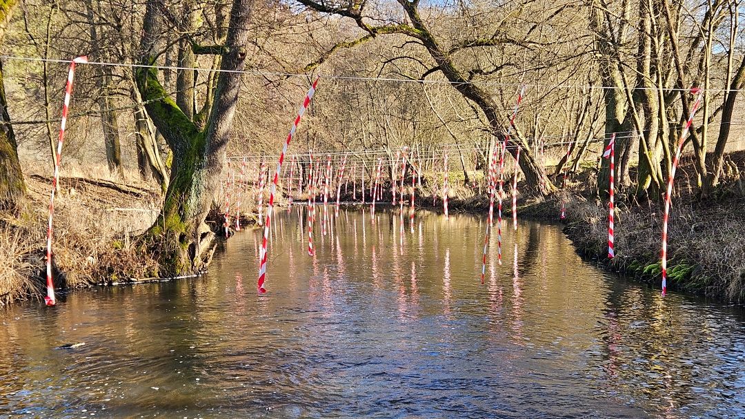 Fáborky vědci zavěsili v listopadu nad řekami na Karlovarsku v úseku několika stovek metrů. Zábrany tu zůstanou do dubna, pak se experiment vyhodnotí.