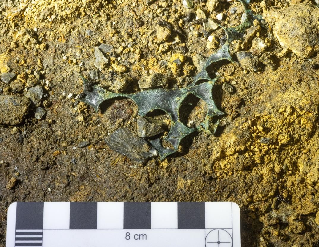 Nálezem plíšků objevitelská radost nekončí. Zajímavý je i odlomený kámen. Archeologové z Univerzity Palackého v Olomouci analyzovali jeho povrch a zjistili, že mohl být dílenským stolem na ražbu plechových plátků.
