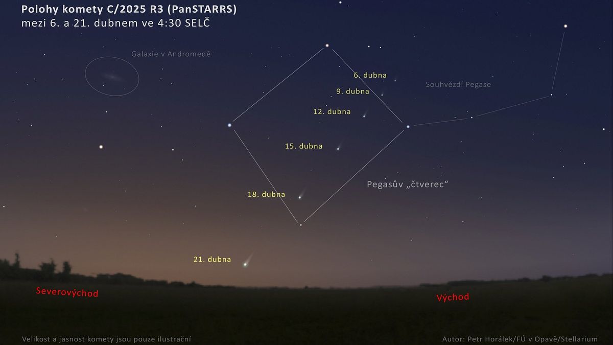 „Protože se kometa přesouvá plynule ze severní oblohy na jižní, máme k jejímu pozorování omezený čas. Viditelná bude jen následující dva týdny, zhruba do 21. dubna, a to v ranních hodinách před úsvitem a během něj. Každý další den přitom bude kometa o něco jasnější. Očekává se, že při současném trendu zjasňování by se měla dát po 10. dubnu najít zkušenými pozorovateli i pouhýma očima,“ řekl astronom.