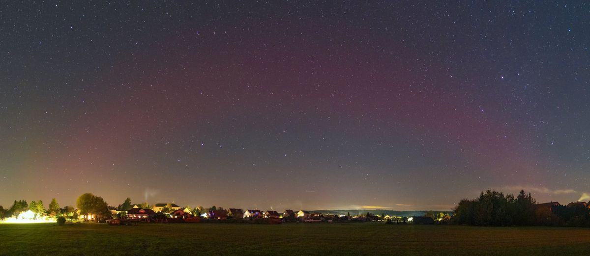 Po většinu času převažovala záře červených a purpurových odstínů, ale chvílemi se nízko nad severním obzorem objevila i zelená, která je u nás výjimečnou záležitostí a obvykle se vyskytuje jen ve vyšších zeměpisných šířkách.