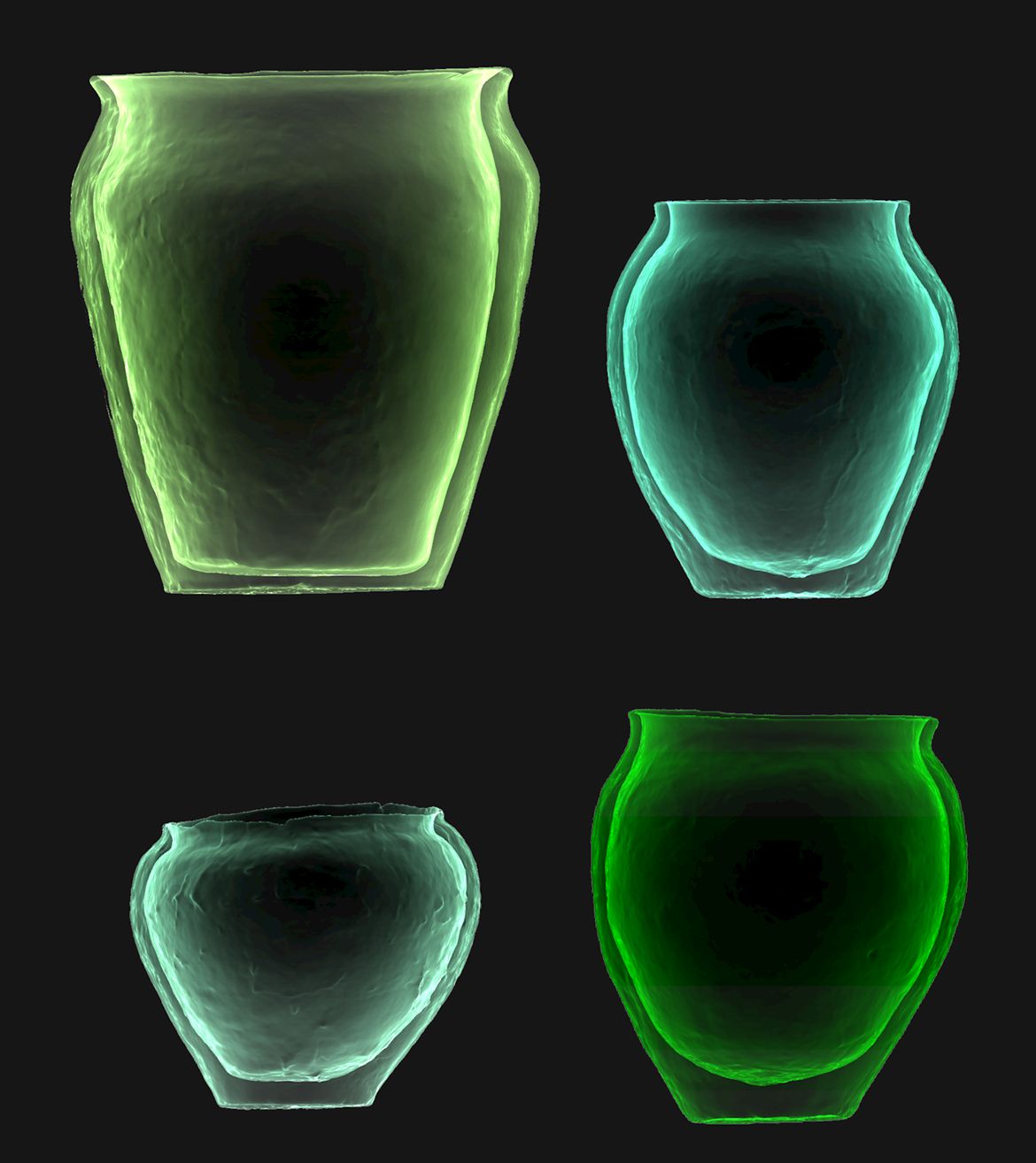 3D skeny hrnců, v nichž Slované vařili proso na kaši.