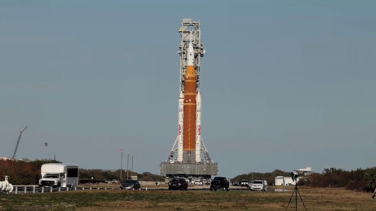 Nosná raketa SLS s modulem Orion pro posádku tak už na vzletovém komplexu LC-39B nestojí.