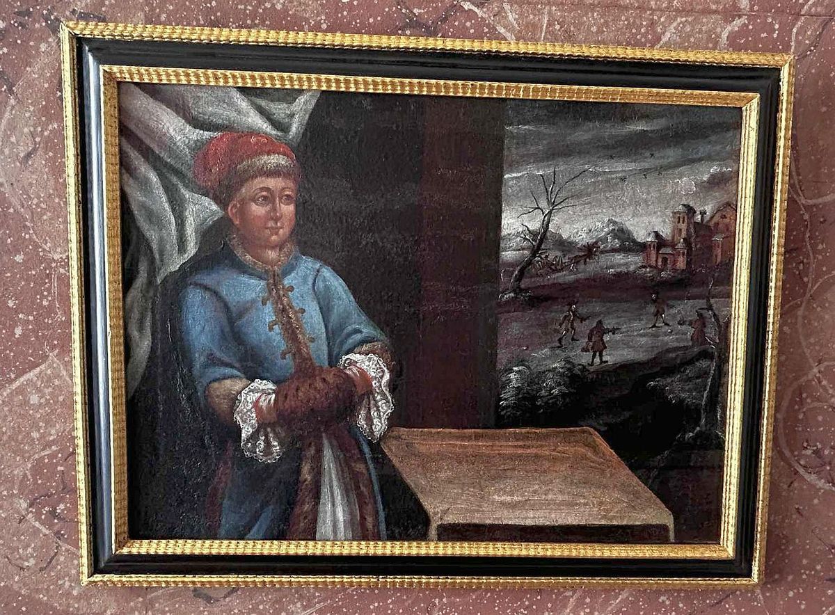 Obraz z 18. století zdobí ložnici hraběnky na zámku Lysice na Blanensku. Jde o skupinku mužů na ledu; nesekají led, ale hrají curling.