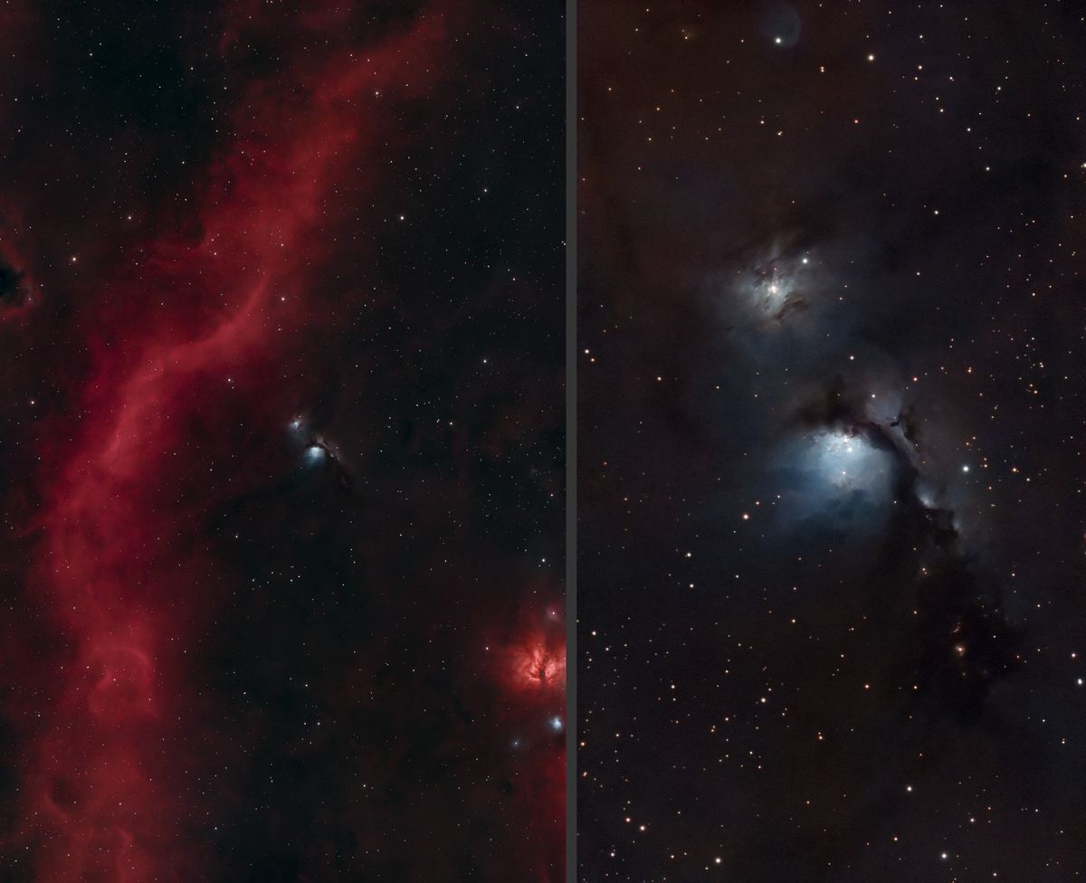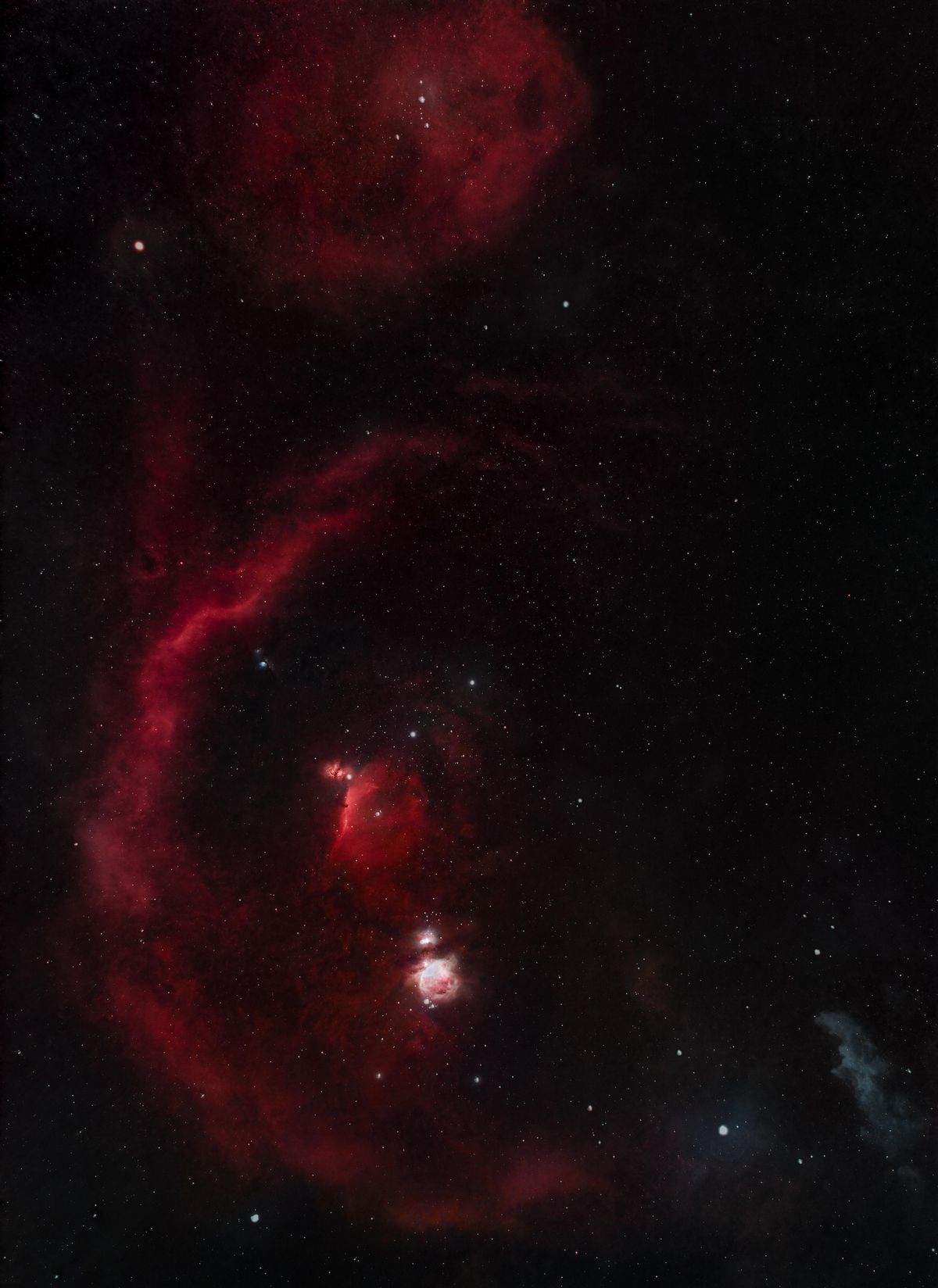 Barnardova smyčka se obepíná jako rudý háv kolem pásu Orionu.