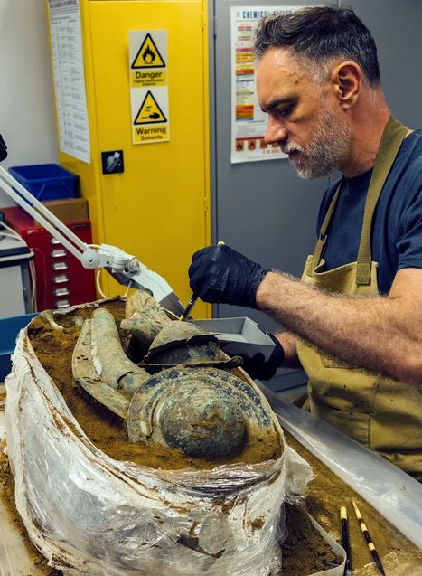 Nalezené artefakty byly vyzdviženy společně v jednom bloku zeminy a následně podrobeny detailnímu zkoumání pomocí moderních metod, včetně CT skenování. Až poté mohly být předměty vyjmuty jednotlivě. Byly totiž vyrobené z tenkých bronzových plátů, které po dvou tisících let v zemi natolik zkřehly, že se teď rozpadají.