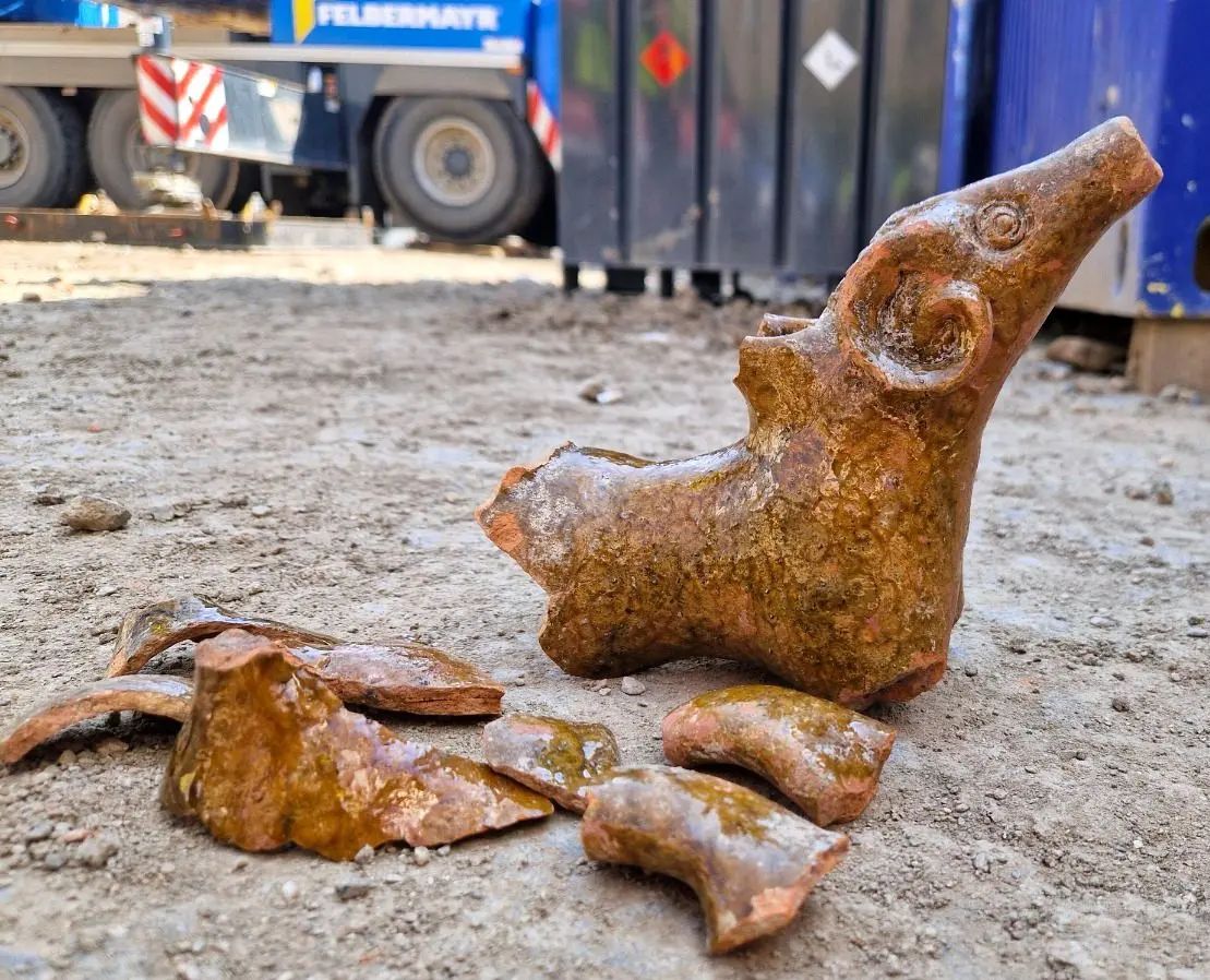 K unikátním nálezům na staveništi Janáčkova kulturního centra patří i tato rozbitá konvička na mytí rukou.