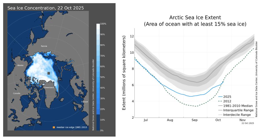 Rozsah arktického mořského ledu je aktuálně na historickém minimu.