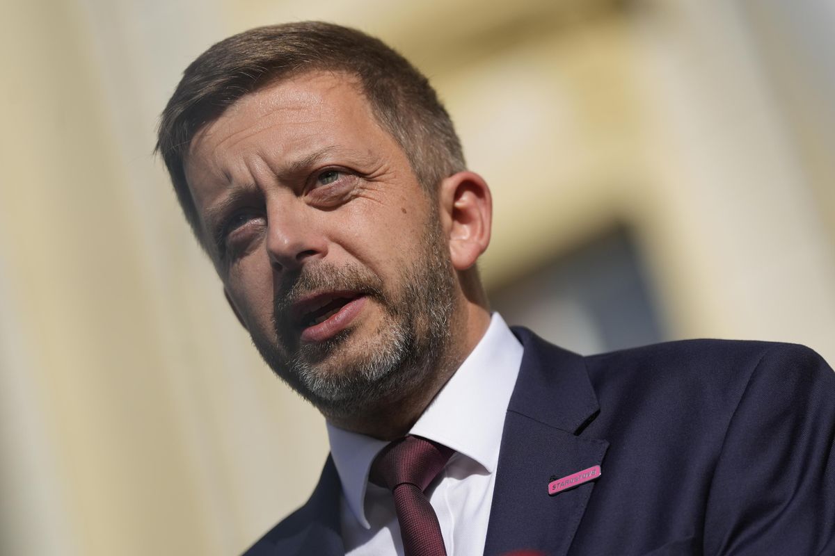 Prezident Petr Pavel si po volbách sjednal schůzky s předsedy stran, které získaly mandát do sněmovny. Na snímku předseda Pirátů Zdeněk Hřib