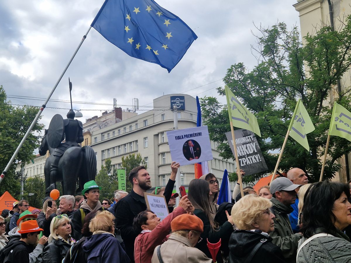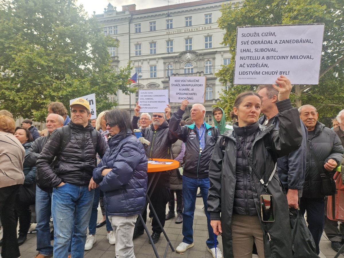 „Komunismus je KONEČNÁ!“ „Už žádné ruské tanky.“ „Po žních půjdeš k Turkovi“ u fotky předsedy ANO Andreje Babiše. Takové transparenty, ale i mnohé další na podporu premiéra a koalice Spolu zaplavily okolí Joštovy jezdecké sochy.