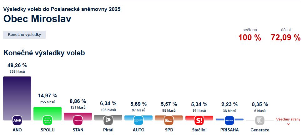 Výsledky hlasování v Miroslavi