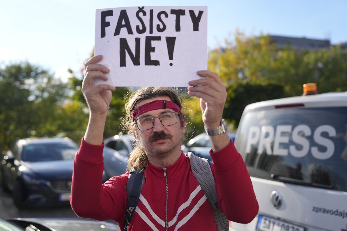 Vyjádřit svůj názor přišel v pondělí před sídlo ANO vyjádřit muž s ručně vyrobeným transparentem „Fašisty ne!“. Zpráva je podle něj vzkazem pro Andreje Babiše.