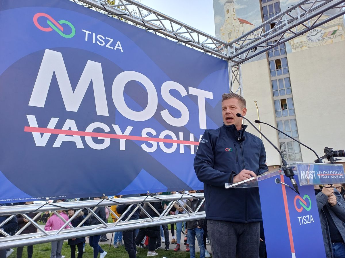Péter Magyar na shromáždění v Mosonmagyaróváru.