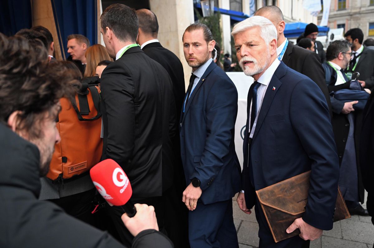 Český prezident Petr Pavel (vpravo) při pátečním příchodu na Mnichovskou bezpečnostní konferenci